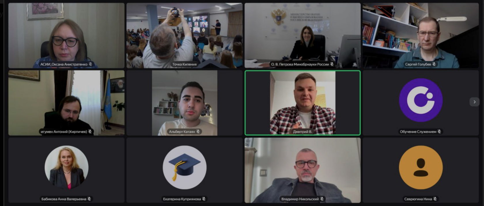 В ходе обсуждения были представлены успешные практики внедрения программы «Обучение служением» в образовательный процесс, а также дана оценка её влияния на реализацию социальной миссии университета. Одной из ключевых тем стало обсуждение первых результатов участия вузов в пилотном этапе просветительской программы «Обучение служением. Первые» в регионах России.
